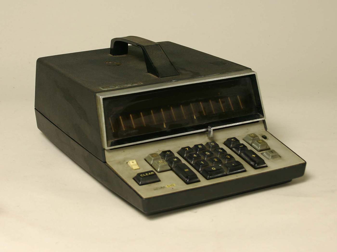 電子回路を使って計算をする、初期の卓上型電子計算機。昭和40年代に使用されたもの。