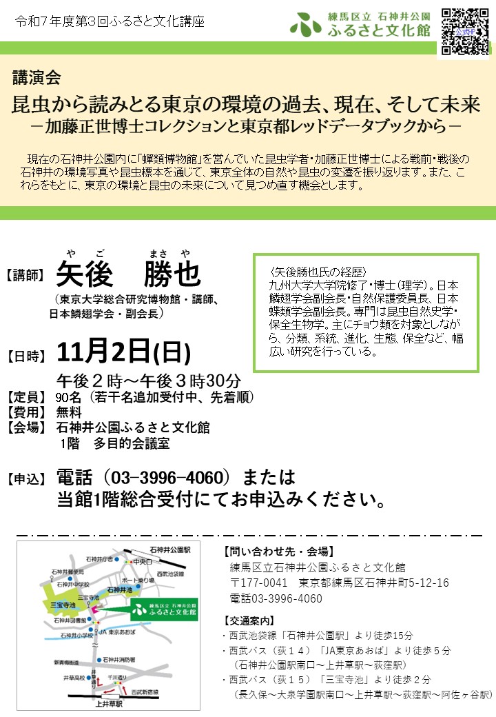 石神井公園ふるさと文化館(〒177-0041 東京都練馬区石神井町5-12-16)へ。申込締切: 10月15日(水)必着