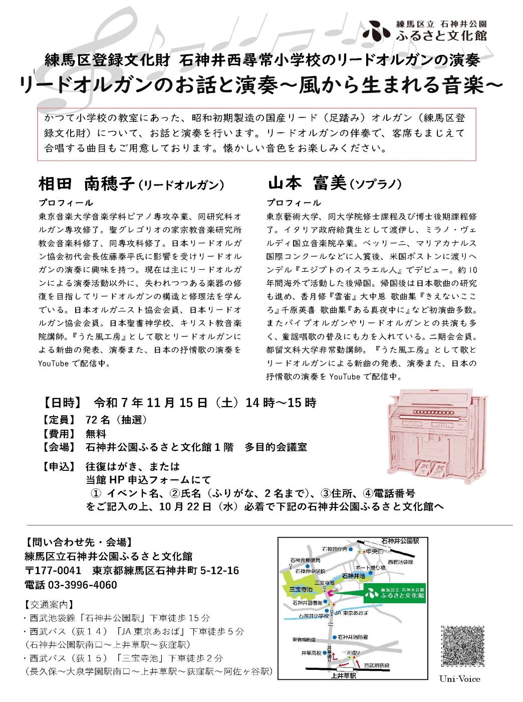 東京音楽大学音楽学科ピアノ専攻卒業、同研究科オルガン専攻修了。聖グレゴリオの家宗教音楽研究所教会音楽科修了、同専攻科修了。日本リードオルガン協会初代会長佐藤泰平氏に影響を受けリードオルガンの演奏に興味を持つ。現在は主にリードオルガンによる演奏活動以外に、失われつつある楽器の修復を目指してリードオルガンの構造と修理法を学んでいる。日本オルガニスト協会会員、日本リードオルガン協会会員。日本聖書神学校、キリスト教音楽院講師。『うた風工房』として歌とリードオルガンによる新曲の発表、演奏また、日本の抒情歌の演奏をYouTubeで配信中。