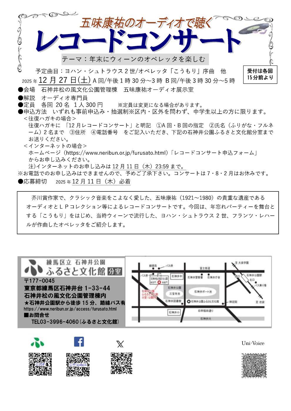 ホームページのトップページ「レコードコンサート申込フォーム」より、お申し込みいただけます。