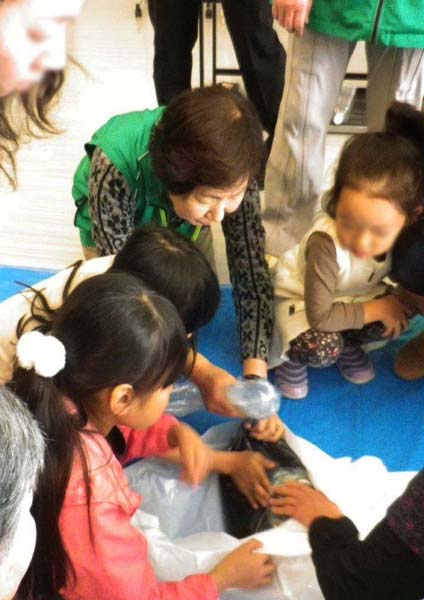 藍染キットを使って、布製のミニエコバッグにビー玉や輪ゴムで模様をつけて、染めましょう。