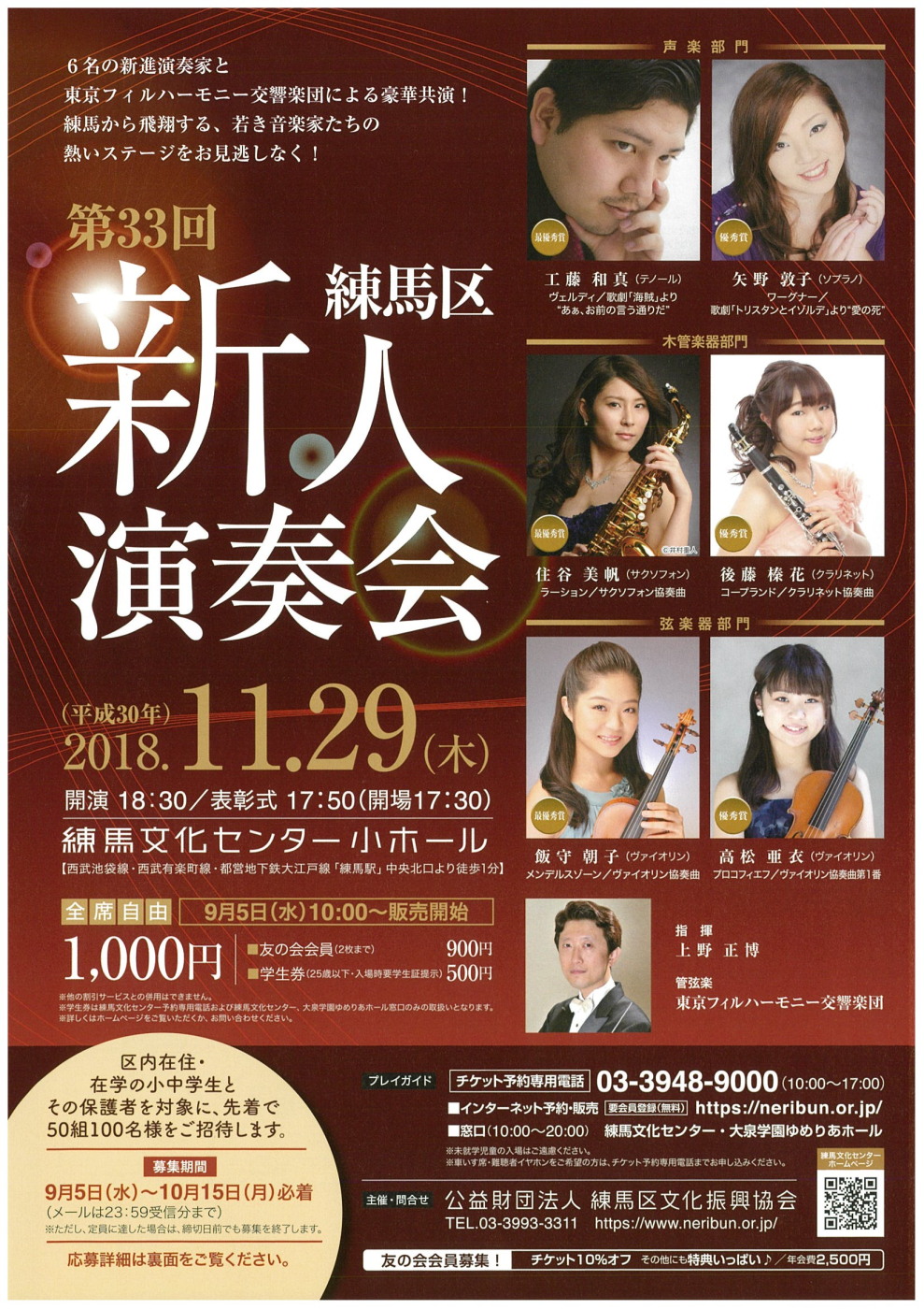 (公財)練馬区文化振興協会「第33回練馬区新人演奏会」係 または