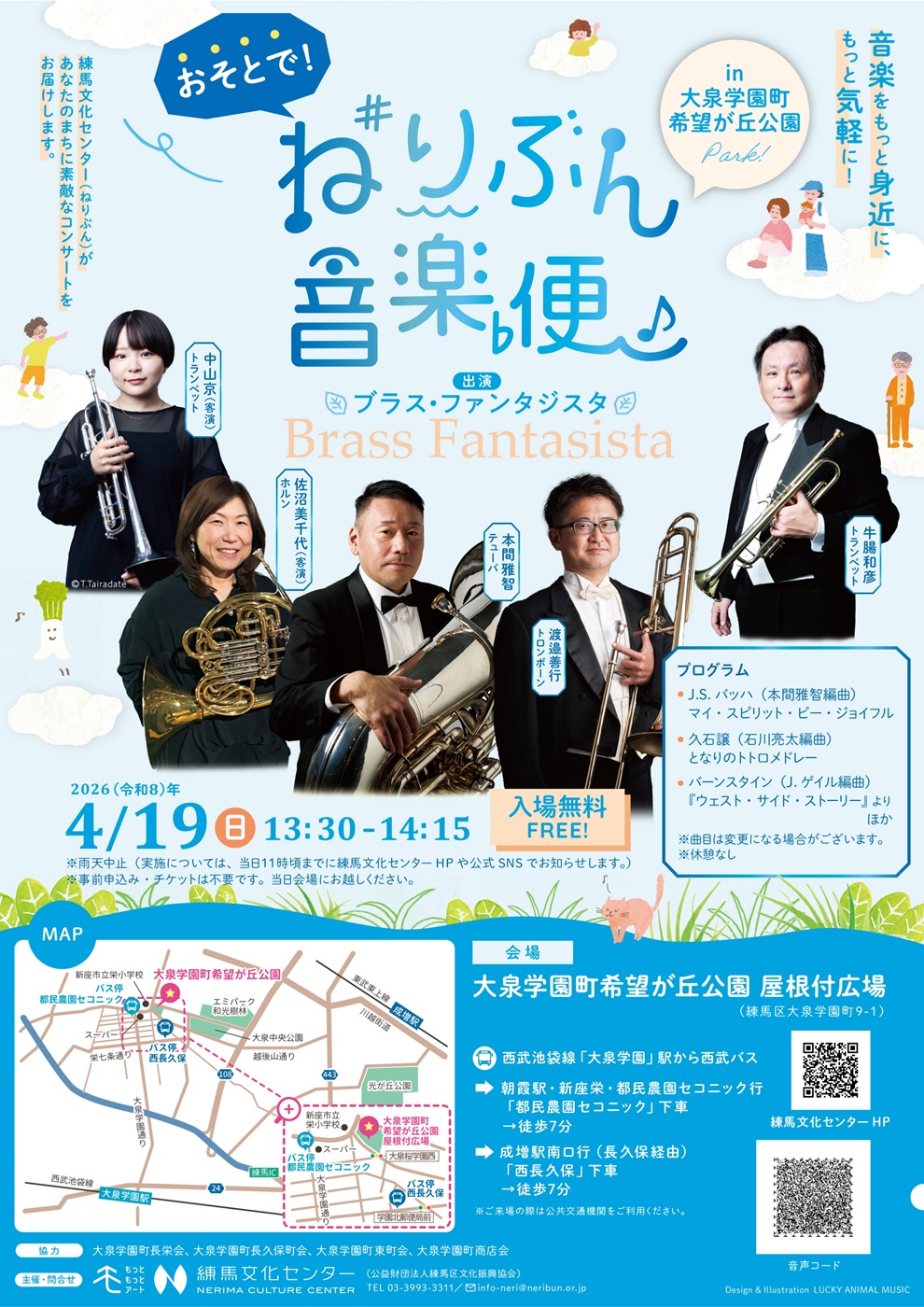 お届け!ねりぶん音楽便が「おそと」に!?練馬文化センター(ねりぶん)が、あなたのまちに素敵なコンサートをお届けします。