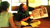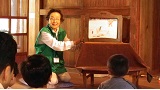 古民家のいろりのまわりで、紙しばいを楽しみましょう。