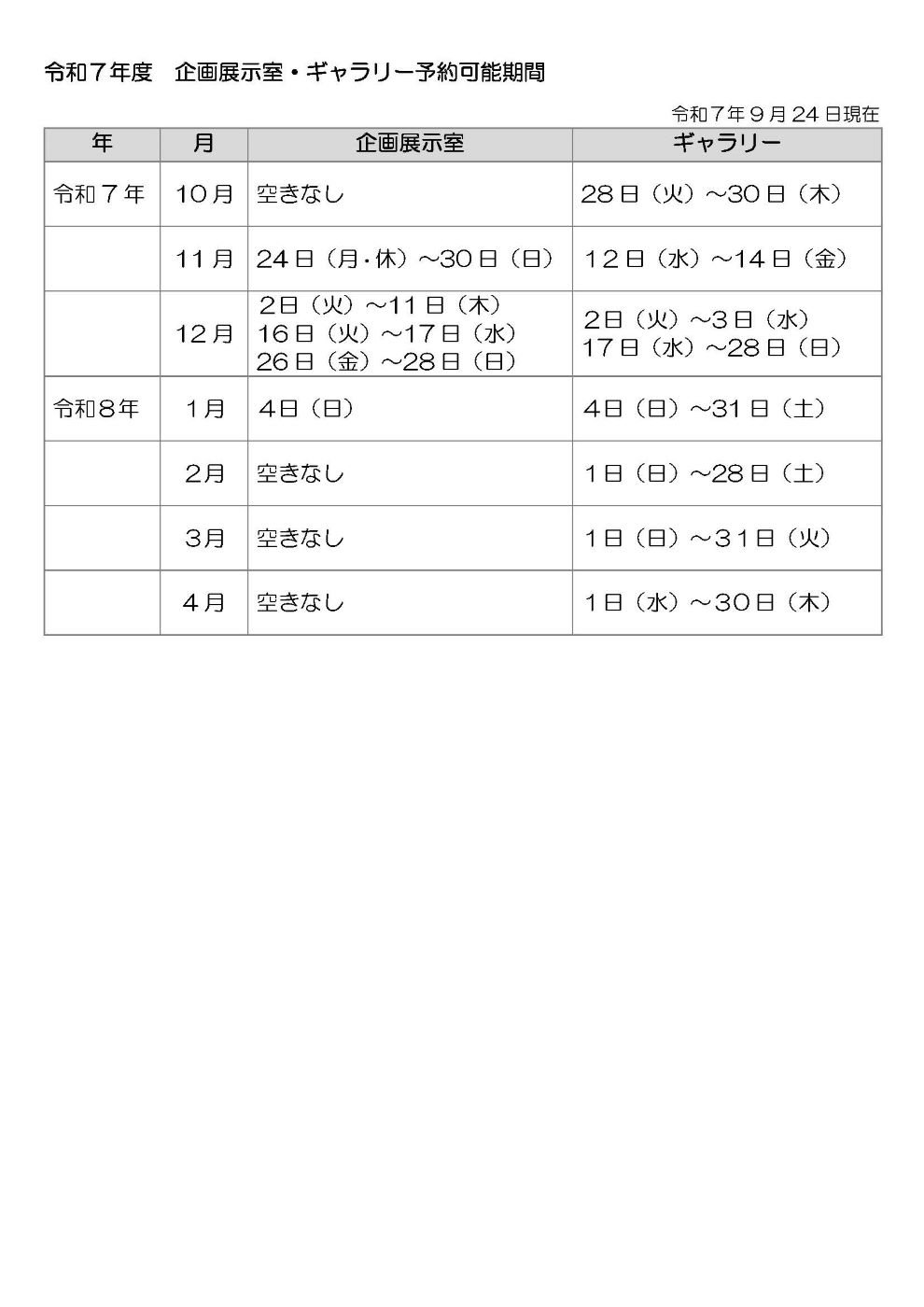 当館貸出施設のうち「企画展示室」および「ギャラリー」につきましては、当館の事業等で使用するため、貸出できない期間がございます。