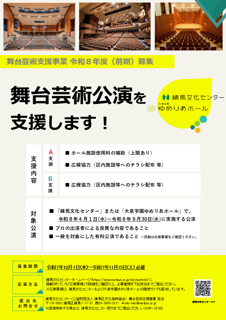 〒176-0001 東京都練馬区練馬1-17-37 練馬文化センター 舞台芸術支援事業 担当